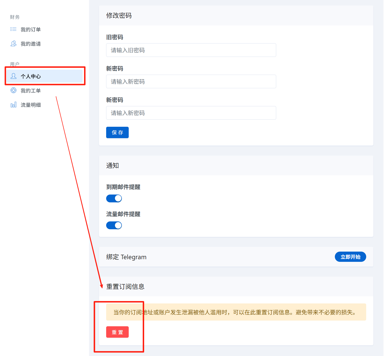 注意:当您重置订阅链接后,意味着账号对应的订阅链接已经发生改变,之前的订阅链接已经作废。您需要重新获取订阅链接,在所有使用的设备上,重新导入。