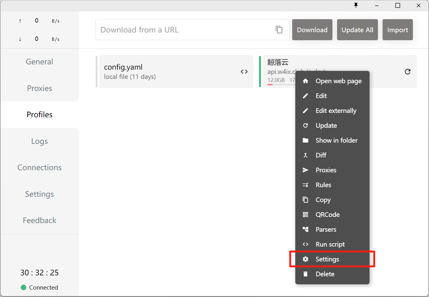 确认 Clash 正常运行后,我们就可以导入节点啦