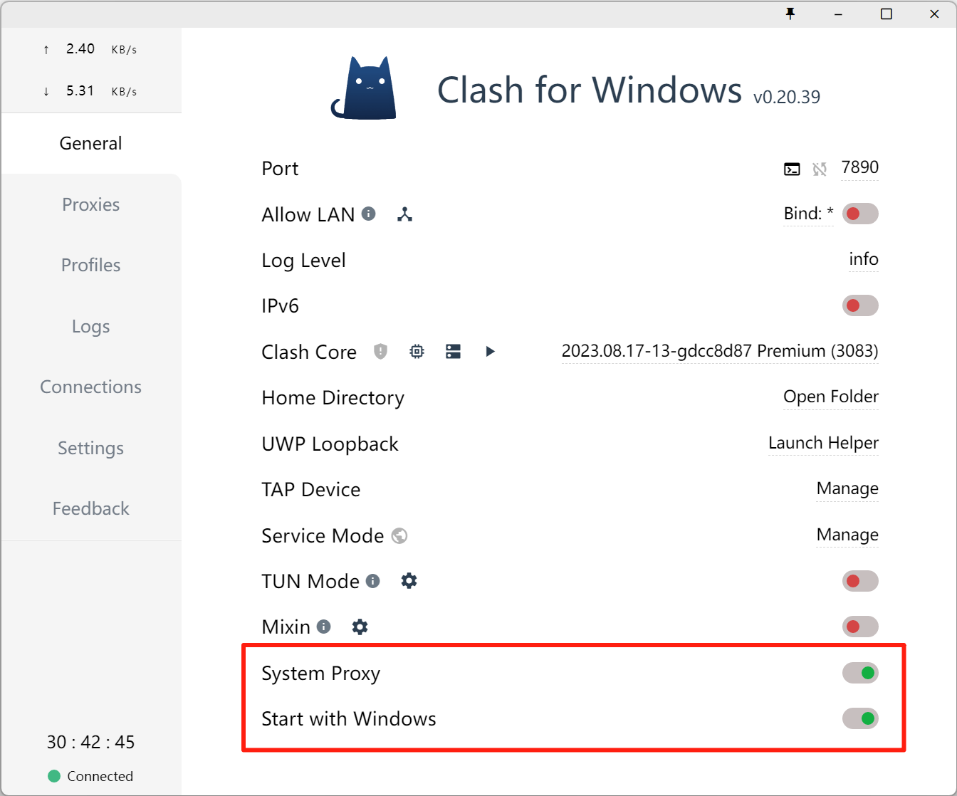 Start with Windows = 开机自启,可以解决本页顶部提到的“开机后断网”的问题