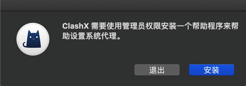 第一次运行 clashx 会需要安装下帮助程序,输入系统密码同意即可