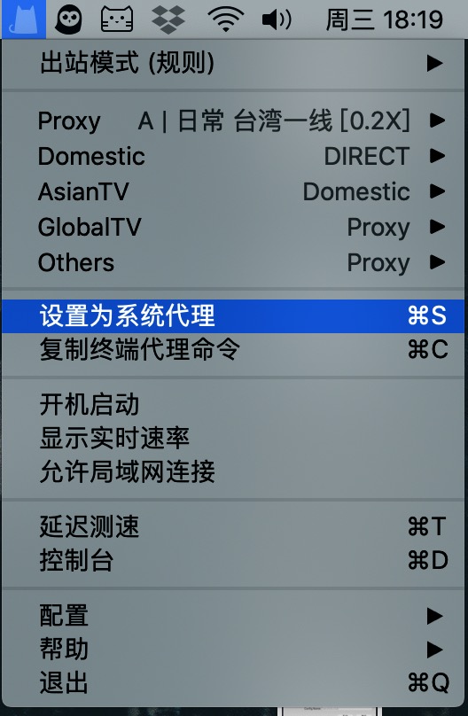 最后,勾选「设置为系统代理」即可使用(相当于开关)