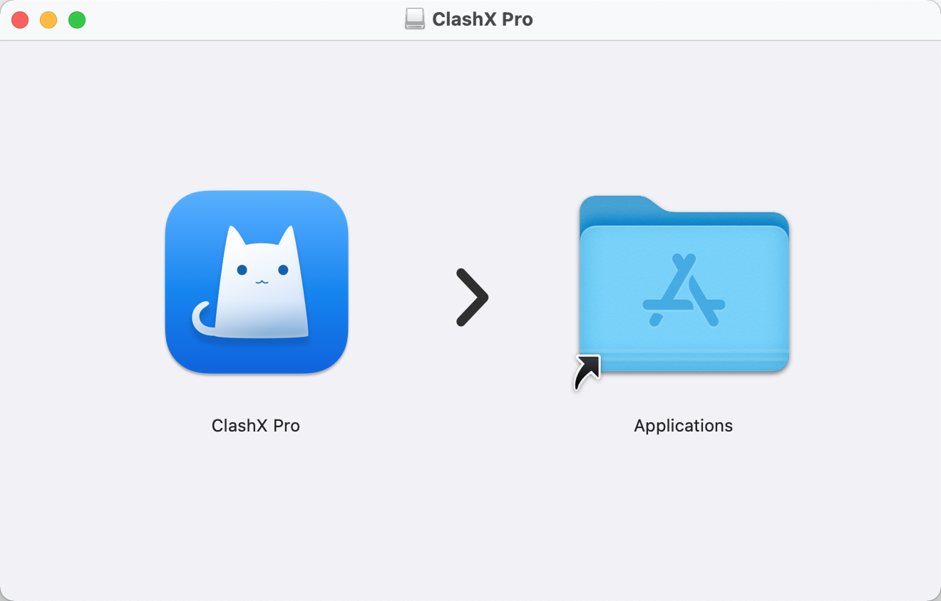 打开下载的 dmg 文件,将 clashx pro 拖动到右边文件夹即可完成安装